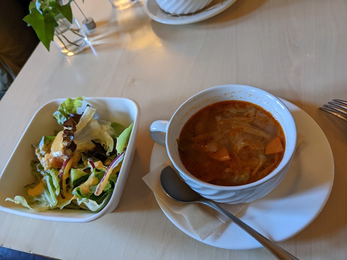 The café is an ideal spot for lunch, with a menu that offers various options including pasta and pizza. Begin your meal with a fresh salad featuring crunchy lettuce and a delectable dressing, which several visitors have found to be a refreshing start. With a wide selection of both lunch and à la carte offerings, there's something to cater to every taste. Don't miss out on indulging in one of their famous desserts—in particular, the apple pie is often mentioned as a must-try, though one may be tempted to skip it in favor of a heartier meal.
